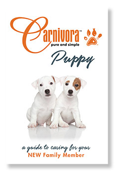 A 28-page guide for caring for puppies. This includes a sample menu for feeding Carnivora foods and feeding guidelines.